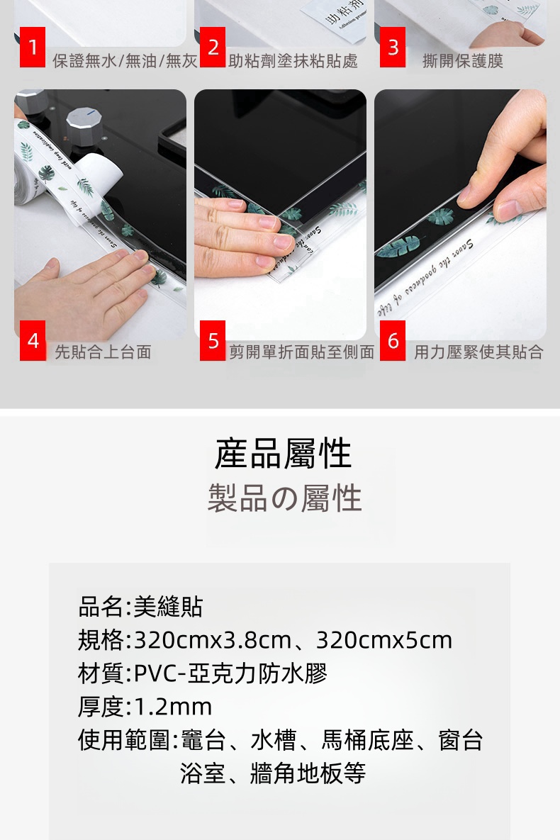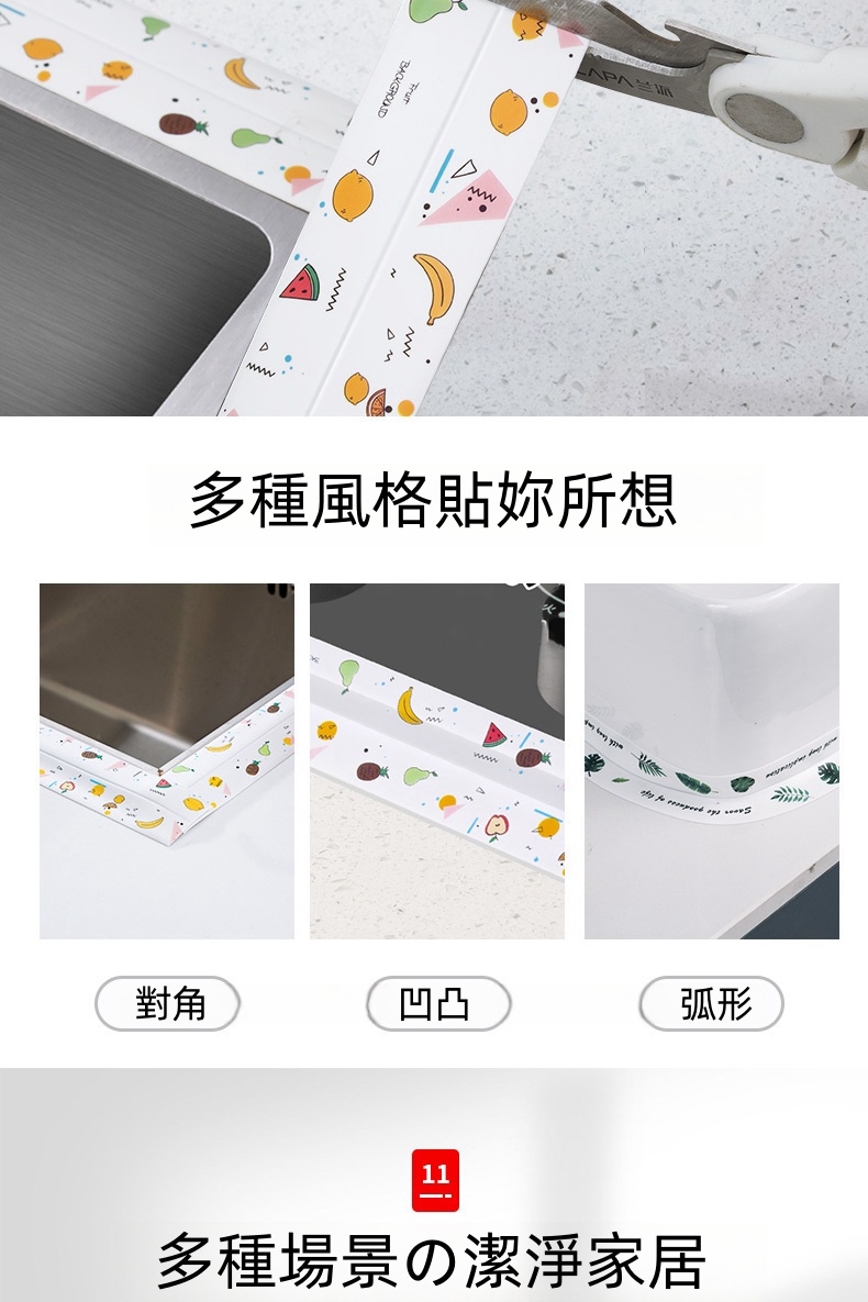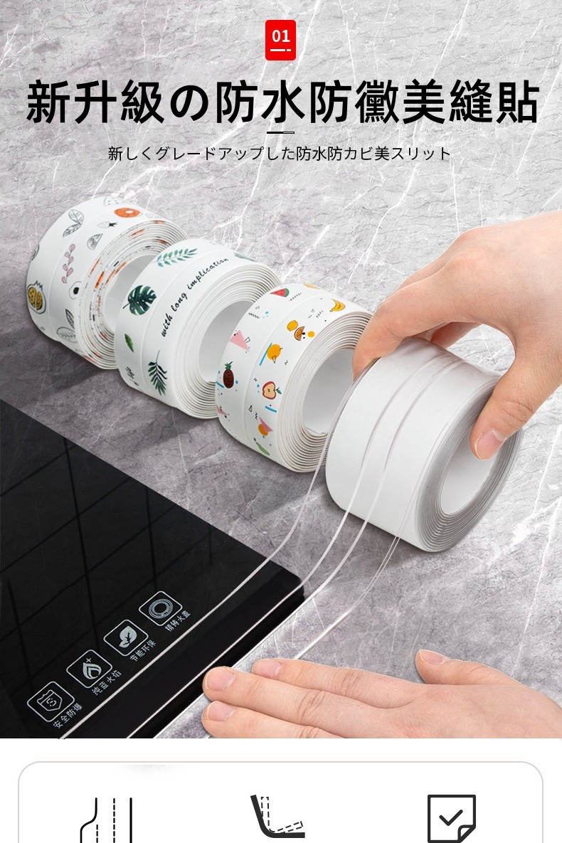 4分鐘前限時搶購 美縫貼防水防霉廚房水槽洗碗灶台封邊擋水條,衛生間馬桶邊緣縫隙貼 - 【嘗鮮價】3入組-NT$980